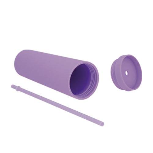 Termo de plástico con doble pared, tapa enroscable y acabado rubber. Incluye popote de plástico.