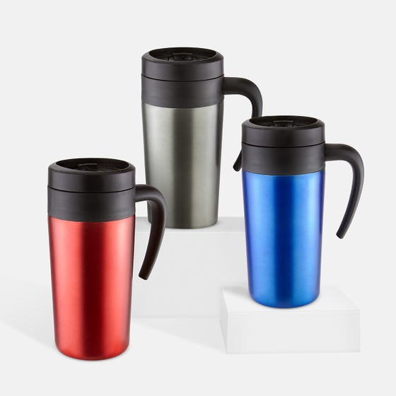 Doble pared. Pared interna plástico, pared externa acero inoxidable. Tapa de plástico con válvula de seguridad. Incluye caja individual.
