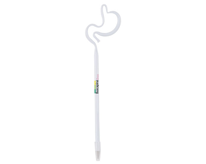 Bolígrafo delgado de plástico moldeado de manera flexible en forma de estómago.