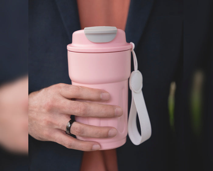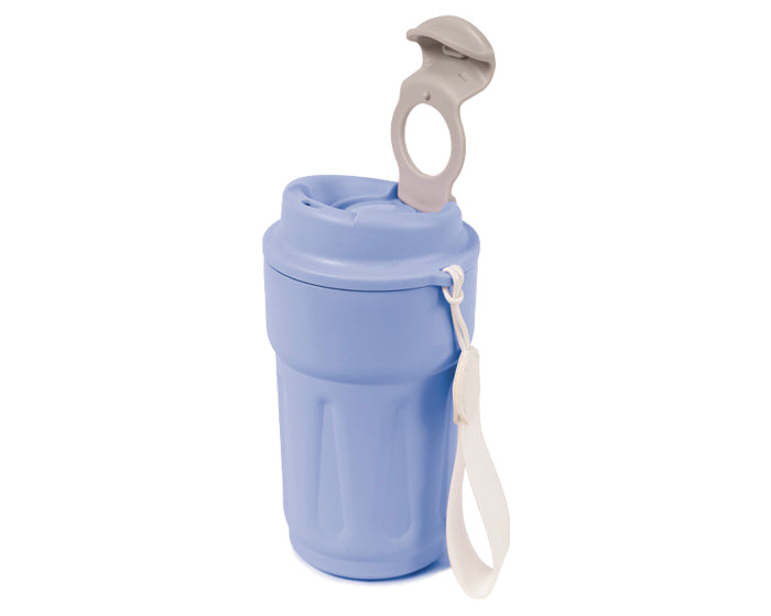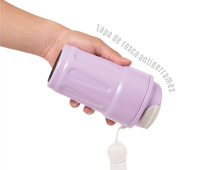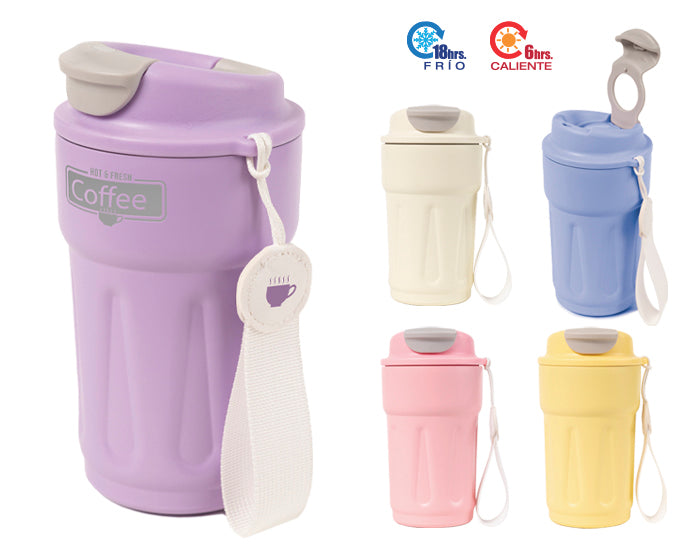 Termo con doble pared de acero inoxidable insulado al alto vacío. Mantiene bebidas calientes por 6 horas y frías por 18 horas. Tiene tapa anti derrames con cierre de rosca y seguro de elevable en color gris. Cuenta con una jareta removible con detalle en curpiel y algodón para sujetarse. CAP. 420 ml. Presentación: Caja de regalo a color.