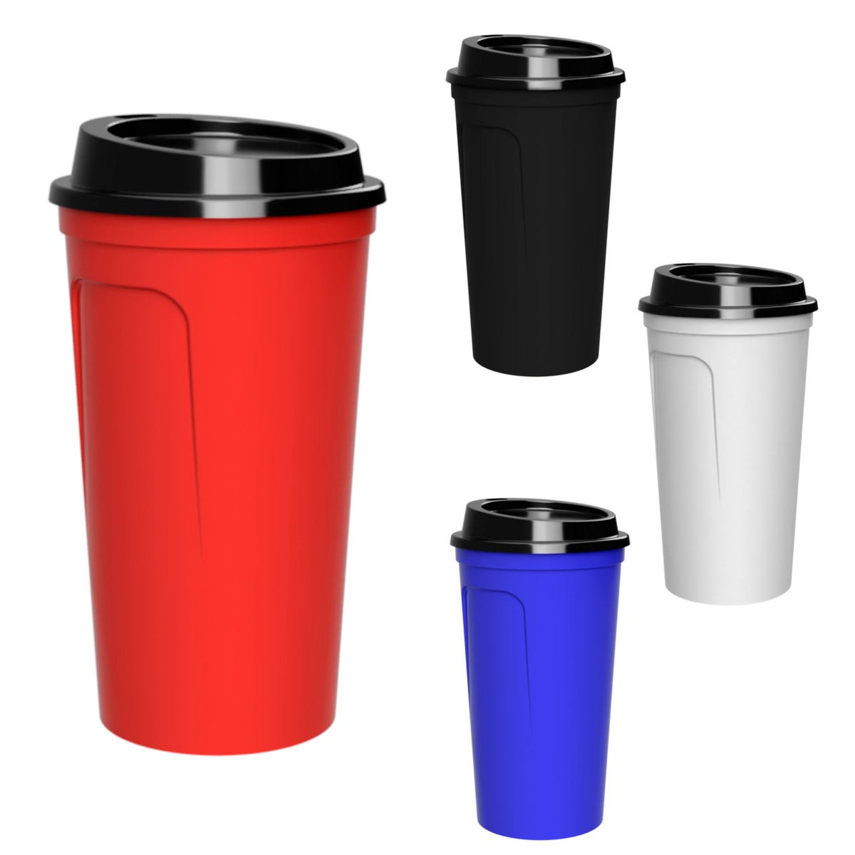Doble pared de plástico. Tapa de plástico con ranura. Incluye caja individual.
